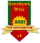These badges are awarded annually by the Staff of the Great Library of Greyhawk wiki, with collective imput from current wiki-editors, to denote those editors who have contributed the most notable content, most New Pages, and/or the most edits in a given year.