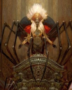 Lolth, as depicted on the cover of the Queen of the Demonweb Pits novel (2001). Art by Justin Gerard.