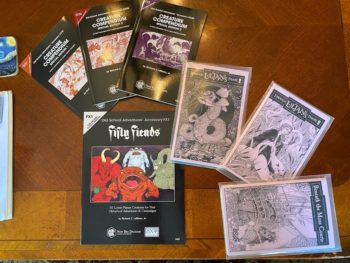 - finding a copy of Dungeon Crawl #3 thanks to the vasty stores of Mike “Badmike” Badolato (I had bought a copy of #2 from Wayne Rossi while home visiting South Jersey several years ago; these are still available in PDF via DriveThru)—the Ballantine Adult Fantasy books were from Mike, too!