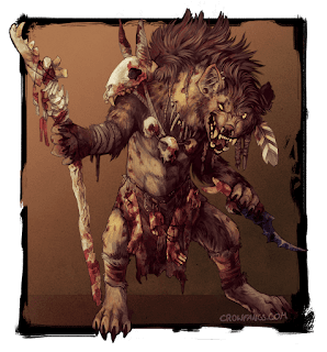 The cult leader assists the necromancer with his experiments with ghouls. The power of Yeenoghu over these undead seems limitless and he has given Old Fang a small retinue of ghouls to serve him without questions. Already several of the Young Bloods are acolytes and bear the markings of the cult.