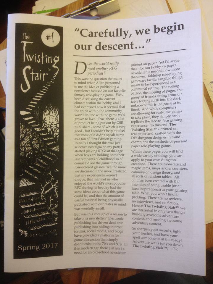 The debut issue of The Twisting Stair, an old-school dungeon design newsletter from Tony Rosten and myself, is now available!