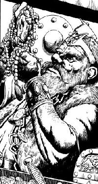 Abbathor manifests as a very large dwarf, fat and piggy-eyed. He wears leather and furs made from those non-dwarves who have opposed him in the past.