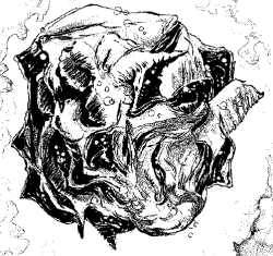 At Neth’s center is a thick knot of membrane at least a mile across where all the folds come together. This serves as Neth’s brain. Other parts of the membrane also serve specific functions, which include areas where the membrane can be easily deformed for communication, encapsulation, and budding Neth’s Children.
